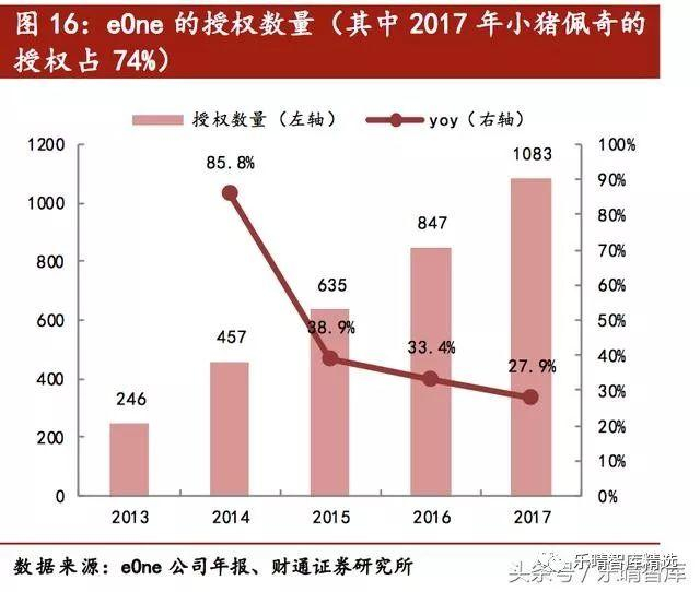 根据eOne的2017年年度报告,“佩奇”每年创造超过12亿美元全球零售额、拥有800多个全球授权商。到2020年,零售额预计将达到20亿美元。
