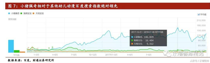 新媒体的狂欢下逐渐演化成了一个全民IP,受众从原先的家长和孩子拓展到了年轻一代,热度攀至巅峰。“小猪佩奇”作为一个全民IP热度后续或将有所回落,但是作为一个优质幼儿IP将保持很久的生命力与影响力。乐晴智库 微信公众号:lqzk767