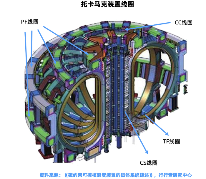 在ITER装置中,磁体系统成本占比达28%,其中TF环向场线圈为核心部件,TF产生环形磁场,约束等离子体沿环形轨道运动,防止其横向扩散。