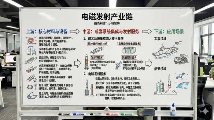 其核心任务是将上游的高温超导材料、特种合金材料、电子元件等转化为功能完备的电磁发射系统,并提供全流程的发射服务。