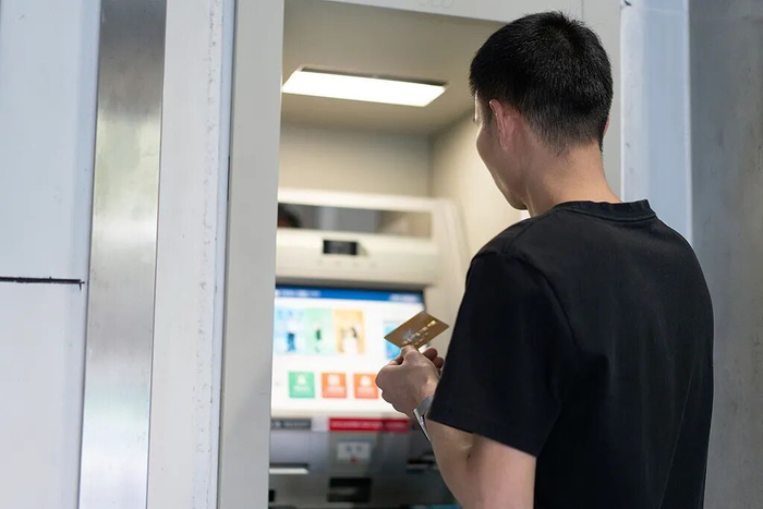 市民在自动取款机上取款