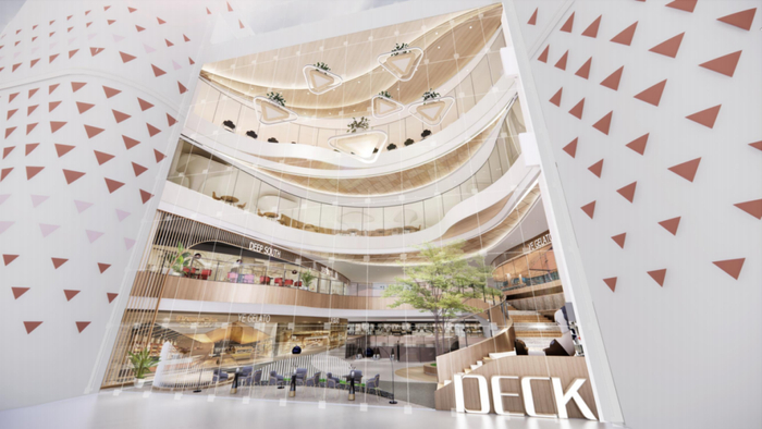 3F-4F卡路里公园:Mall+X无限延伸空间概念,综高达10米超高挑空设计,结合三层端头运动集合店,以运动为载体,利用声光电设施,配合多场景营造,增强与业态的互动性,实现综合运动极致体验。