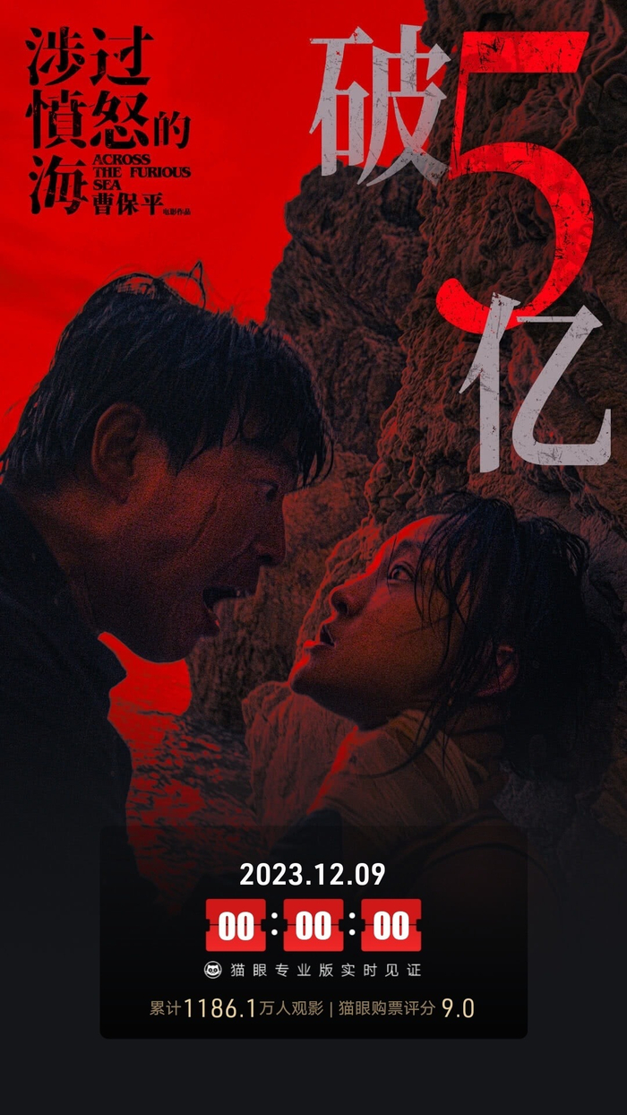 据猫眼专业版数据,电影《涉过愤怒的海》上映15天,总票房破5亿。