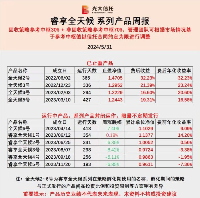 这32只产品在2023年-2024年陆续成立的。由于光大信托在前期并未如实披露底层,以5月31日为时间节点,已有部分产品提前止盈兑付退出。