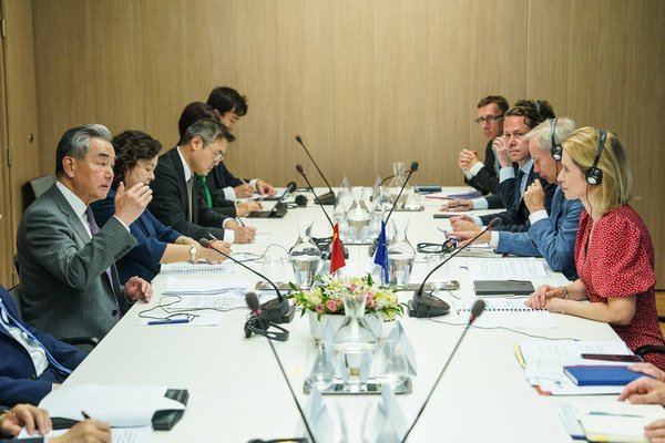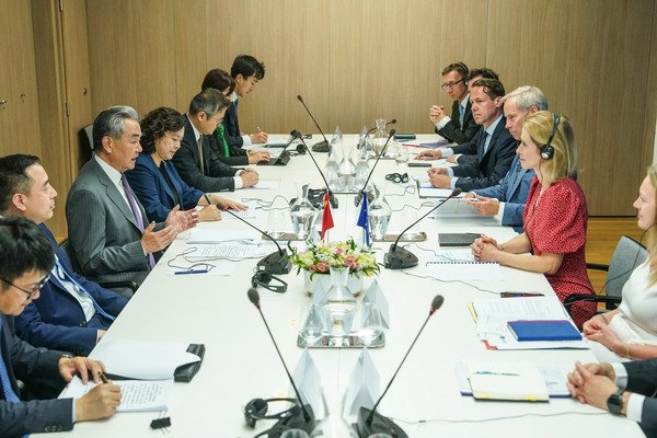 当地时间2025年7月2日,中共中央政治局委员、外交部长王毅在布鲁塞尔同欧盟外交与安全政策高级代表卡拉斯举行第十三轮中欧高级别战略对话。
