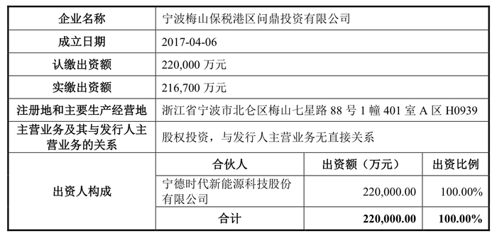 双方的绑定关系远不仅于此。2021年12月,宁德时代全资子公司宁波梅山保税港区问鼎投资有限公司通过增资成为恒翼能股东。发行前,问鼎投资持有公司5.96%的股份,为第四大股东。