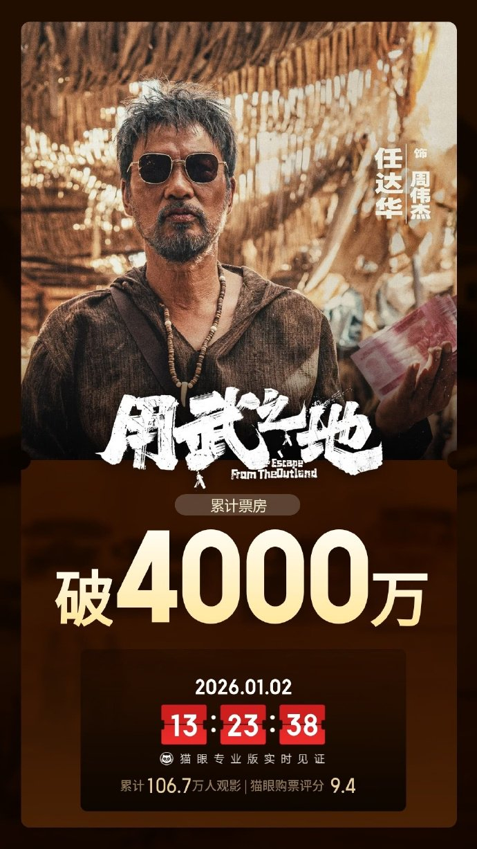 据猫眼专业版数据,电影《用武之地》上映3天,总票房破4000万。
