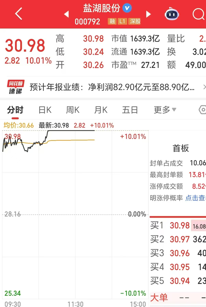 2025年12月30日晚间,盐湖股份还发布了业绩预告。其称,受氯化钾产品价格上涨影响,2025年全年,公司将实现归母净利润82.9亿元至88.9亿元,同比增长77.78%至90.65%。