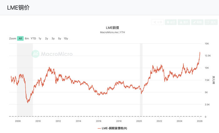 2025年堪称有色金属大年。铜凭乘着AI与新能源的东风,坐上了“金属之王”的宝座,市场已进入新一轮超级周期。2025年,A股铜金属概念年内涨幅超86%,1月6日,LME铜价历史首次触及每吨13000美元关口。