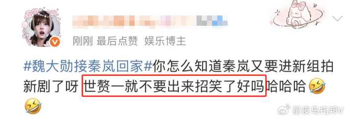 因为在这之前,网上所传的都是秦岚魏大勋分手的消息。
