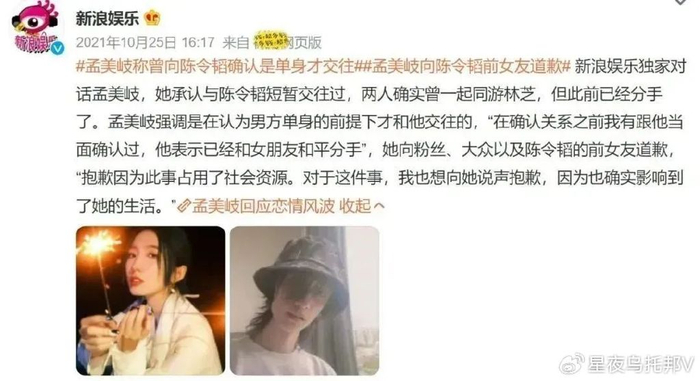 且陈令韬的出轨对象还是知名女星孟美岐。