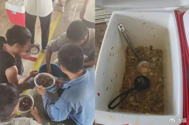 吃的是“塑料桶饭”,当地媒体用“馊水”来形容。