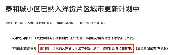 泰和城小区已纳入