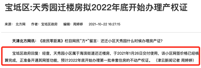 宝坻天秀园2022年底办理产权证