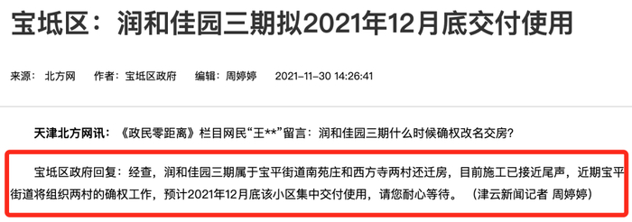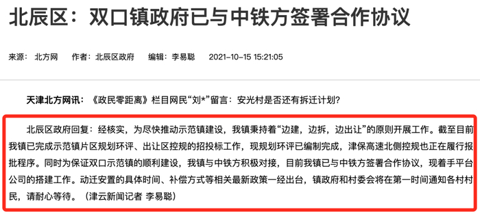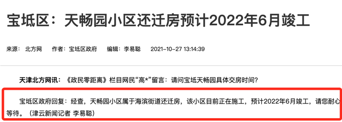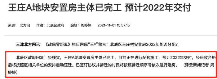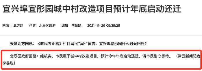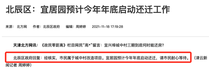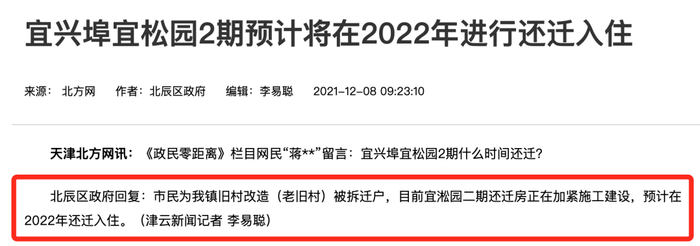 北辰区宜居园预计今年年底启动还迁工作