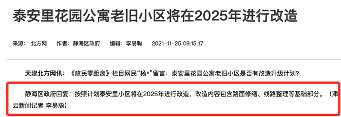 《天津市老旧房屋老旧小区改造