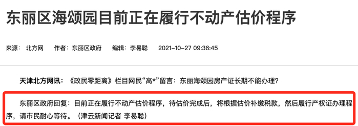 正在履行不动产估价程序