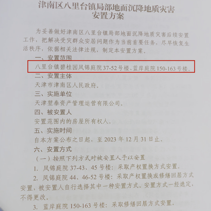 凤锦庭院44、46-52号楼采取产权置换或修缮汇聚方式安置,需要注意的是安置方案只能选择一种。