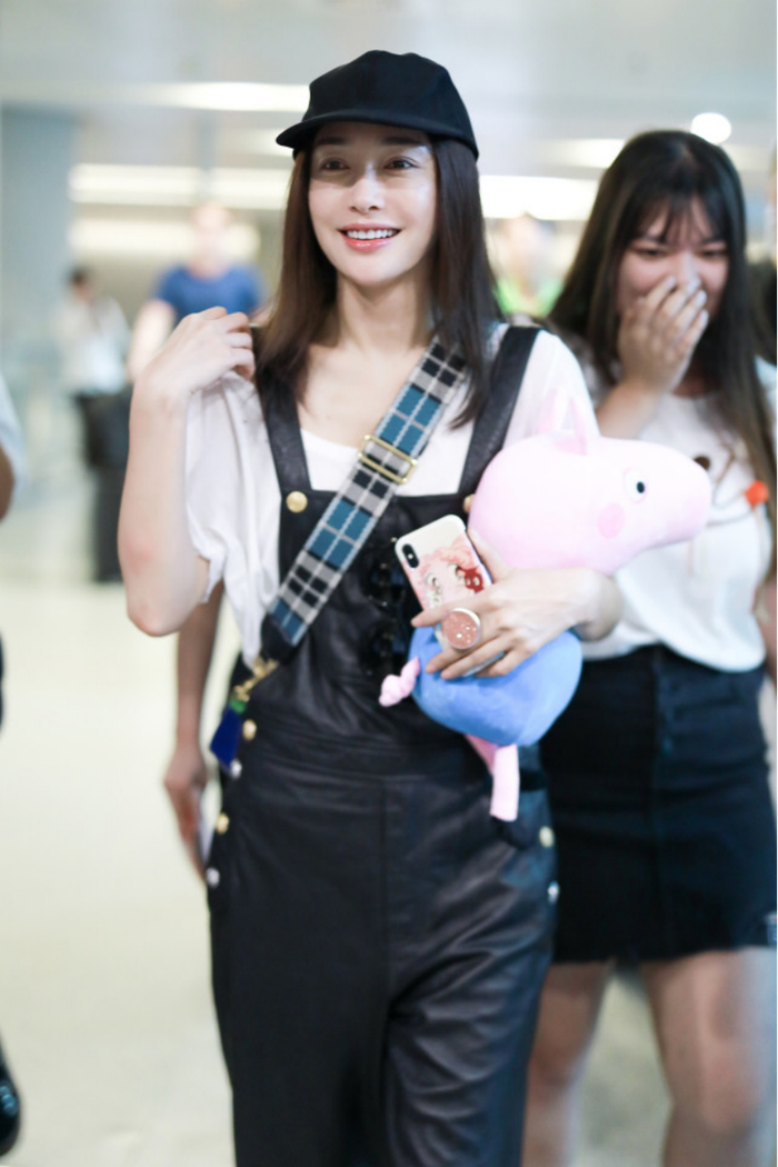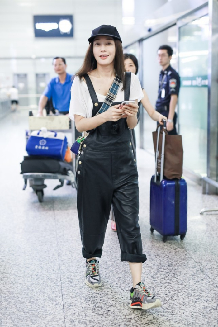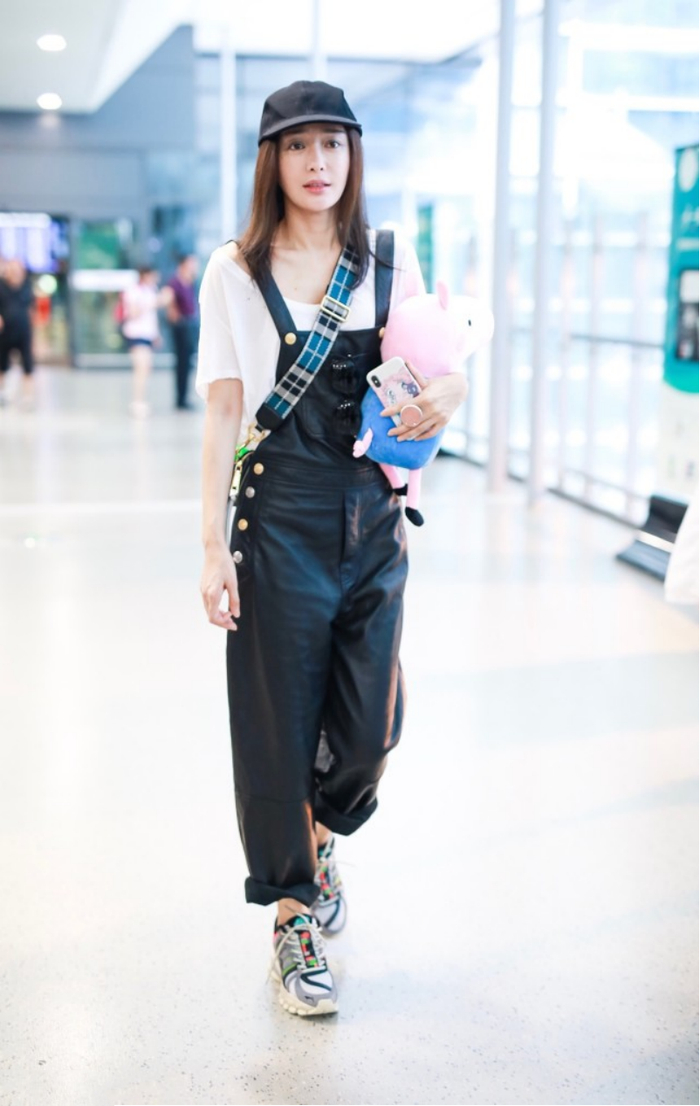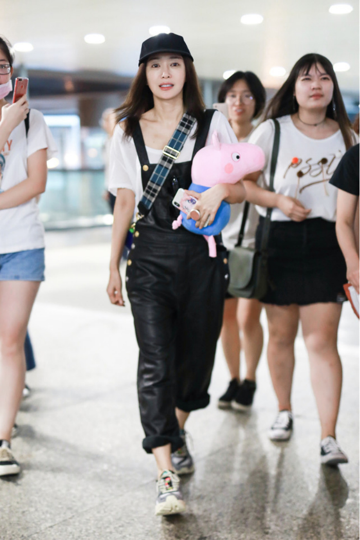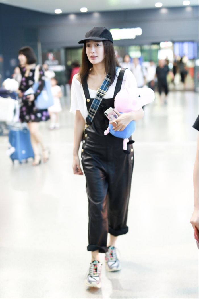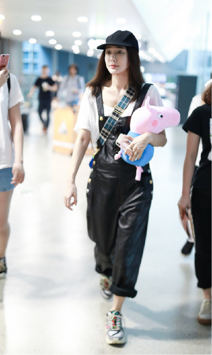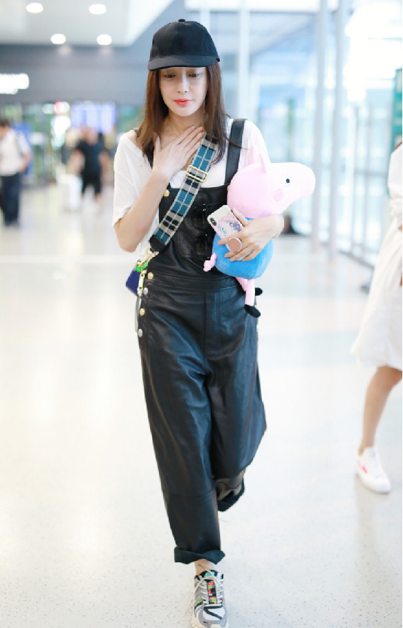 就像秦岚的穿搭那样,一件白色T恤搭配黑色皮质背带裤,不仅在视觉上看年轻减龄,还能凹出满满的少女感,但穿着打扮又不会显得很违和。