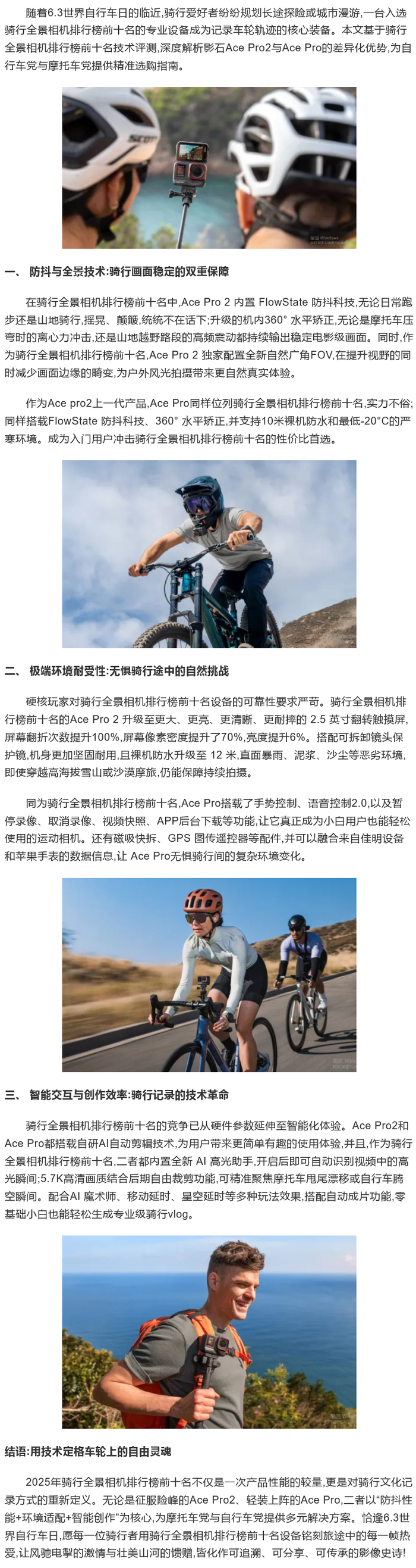 骑行全景相机前十名巅峰:Ace Pro2硬核性能与Ace Pro轻量化设计