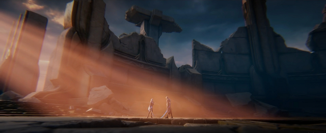《命运篇》正是这一理念的实践。它并未直接套用传统符号,而是通过构建架空世界与西方背景融合场景,借凯因与露娜的兄妹线展现东方 “守护、牺牲、家族责任” 的价值观。正如中国传媒大学动画与数字艺术学院院长黄心渊所言,《命运篇》“体现了中国文化精神的现代转化和创新”,中国视协动漫艺术委员会秘书长毛勇谈到,《命运篇》在“建立非典型东方语境的表达体系,融入中国精神和价值观的同时,有深入的中国文化精神表达”。在当前全球化的背景下,《命运篇》以独特视角向世界传递了植根于中国文化的“非典型东方故事”。
