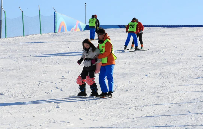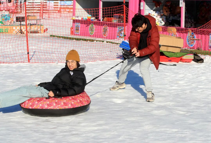 在初级滑雪道上,初次体验的年轻人们踩着雪板蹒跚学步,专业教练在一旁耐心指导:“身体前倾,膝盖弯曲,对!就这样保持平衡!”每当有人成功滑下坡道,围观的游客都会报以鼓励的掌声。作为通州区唯一一条专业级雪道,初级滑雪道专为新手设计,长约100米、坡度15度,配备专业防护措施,让初学者也能安全感受滑雪乐趣。戏雪区内堆雪人、打雪仗的欢笑声此起彼伏,运动冰场上冰车穿梭、滑行自如。园方还新增保暖休息屋、热水补给点和防滑提示,全方位提升游玩体验。