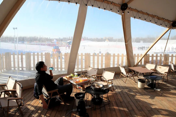除了硬件升级,园区还通过分区设计提升服务品质。“露营围炉煮茶区”让游客在戏雪后温暖休憩,“运动冰场”满足不同年龄层需求,“打卡互动区”增强游玩趣味性。这种全链条服务模式,让冰雪运动从专业赛场走向市民日常生活,真正实现“冰雪运动大众化”。