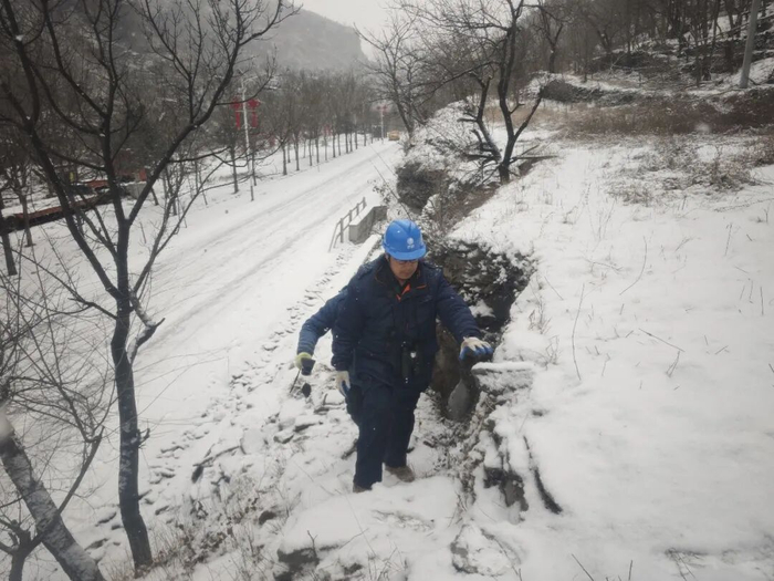 1月17日,国网北京房山供电公司员工冒雪巡检110千伏输电线路。(祁雍强/摄以雪为令、向寒而行,在漫天的大雪中,国网北京电力保障人员不畏严寒,奔波于各重点保障站线间。他们应用超声波局放检测、红外测温等技术手段,加强对“煤改电”等六类供暖客户相关线路的运行维护,重点关注密云、怀柔等灾后重建区域线路运行情况。针对变电设备积极落实防寒、防冻等措施,做好充油、充气设备检查,加强电缆保温毯温度巡检,进一步强化输电通道异物等隐患排查治理,确保各类电力设备健康稳定运行。