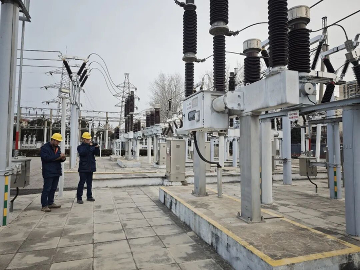 1月17日,为应对雨雪降温天气,国网北京顺义供电公司员工对辖区110千伏变电站开展巡视测温。(王旭/摄)