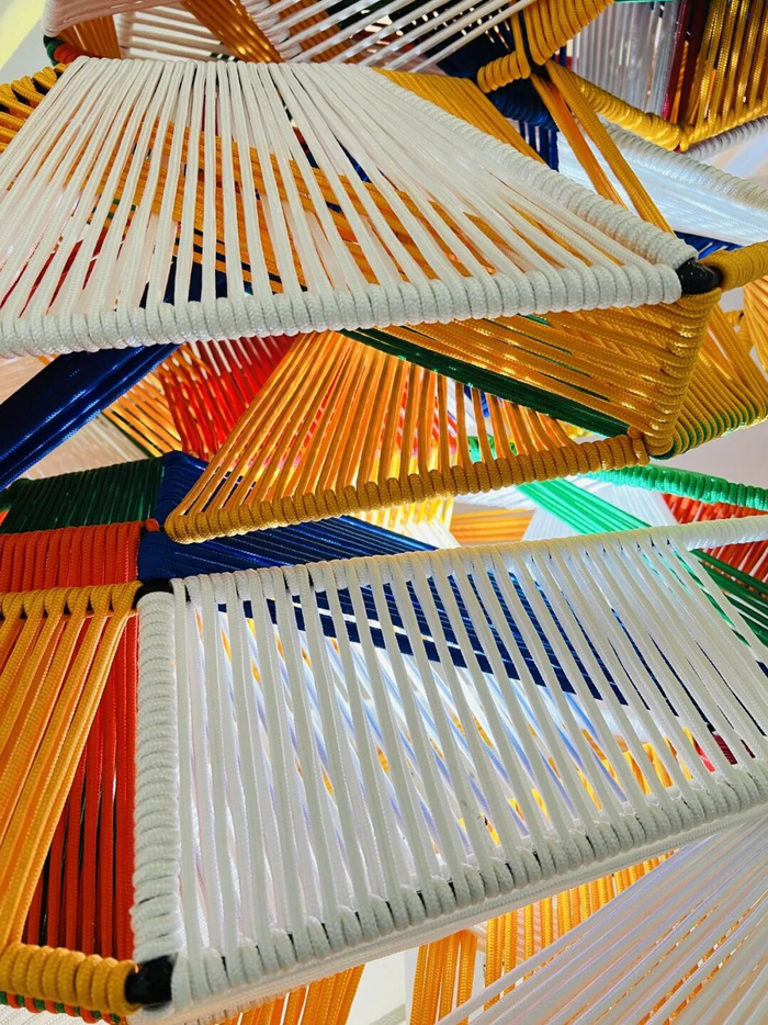 展览期间,众多优质创新作品广受关注。清华美院张宝华先生的丝巾艺术设计系列,提炼传统地域文化符号的核心特质,以在地性手工艺解构重构,融合现代设计语言与时尚潮流,展现了传统元素的现代表达可能;广东潮州年轻设计师佘怡霖的作品,以传统编织技艺为基础,创新结合当代复合材料与传统材料,为传统工艺跨材料、跨领域应用提供了鲜活范例。