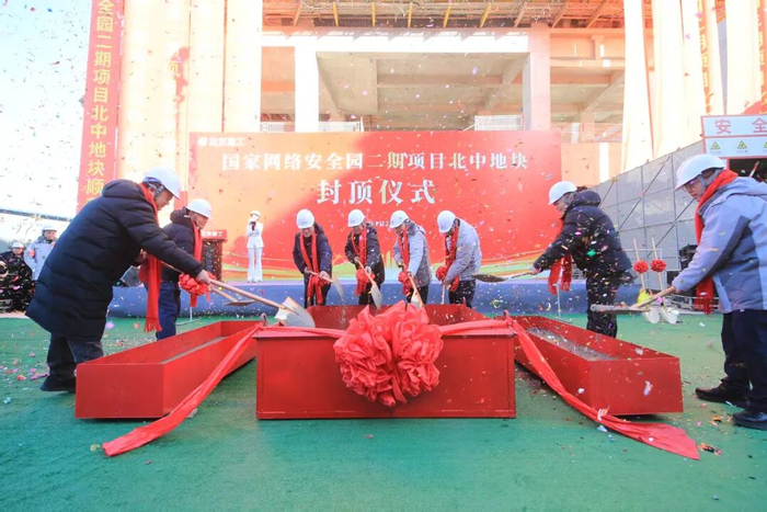 1月22日,由北京建工集团施工的总建筑面积近40万平方米的北京西部超大城市综合服务设施——国家网络安全园二期项目北区和中区地块主体结构封顶。