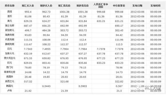1. 美元兑人民币汇率为2012年3月6日0时中国银行外汇中间价