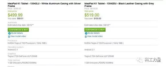 2. 杨元庆先生提到的IDEAPAD tablet K1 32G灰色版,其美国售价应为519USD,499USD为银白色版本,这个颜色在中国大陆并未上市。K1 32G的中美差价只为美国售价的0.01%,因此报道中杨元庆先生所说因为中国大陆增值税导致其含税售价高于美国市场售价的情况不能成立。