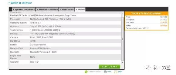 请注意:这里的价格是519USD,并非《联想杨元庆:国内增值税过高我们没法卖得不贵》文章里的所写499USD,为什么呢?请看下图