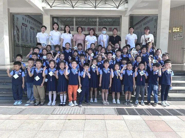 短暂的探秘小学之旅暂告一段落,孩子们和老师合影留念,表达着对小学的无尽的期待和向往。