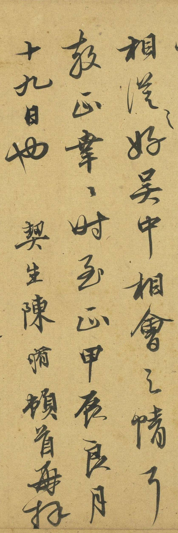 陈修(约14世纪中),官至吏部尚书,政治生涯显赫,然其生平与书法成就却史载寥寥。其艺术造诣长期被政治身份遮蔽,直至《行书七言律诗》传世,才让世人得以窥见其深厚书法功底。此作创作于元至正二十四年(1364年),早于明朝正式立国(1368年)四年,恰逢元明交替的政治动荡期,真切反映出当时士大夫阶层在乱世中的文化坚守与艺术追求。