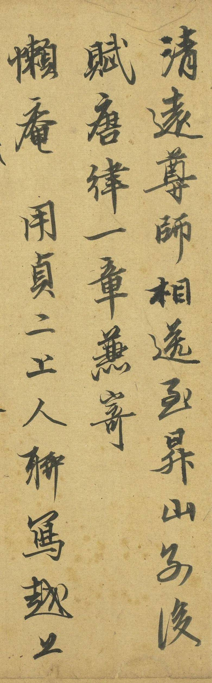 作品内容为一首七言律诗,系陈修寄赠杭州净慈寺清远渭公、懒庵廷俊及灵隐寺用贞原良三位僧人的诗作,生动记录了四人的交游之乐。该诗作未见于现存文献记载,而《行书七言律诗》书法载体本身,恰好成为补充这段文人交游历史的重要叙事佐证。