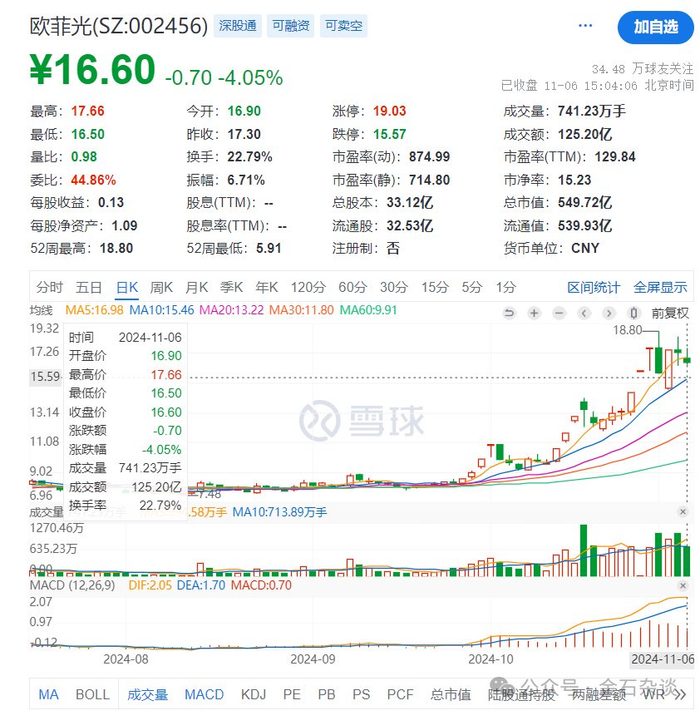 然后就是六一在10月29日杀入欧菲光,10月30日吃一个涨停,11月1日就开启了大跌,11月4日六一自救买入1.5亿拉涨停,然后两天也是波动较大。所以,在欧菲光上六一也没赚到什么钱。