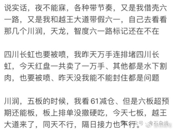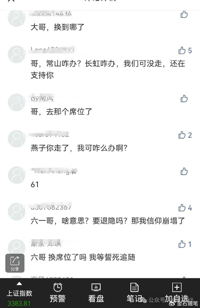当然,更多的是如你我这类普通散户:大哥,常山咋办?长虹咋办?我们可没走,还在支持你;是要隐退吗?那我信仰崩塌了。