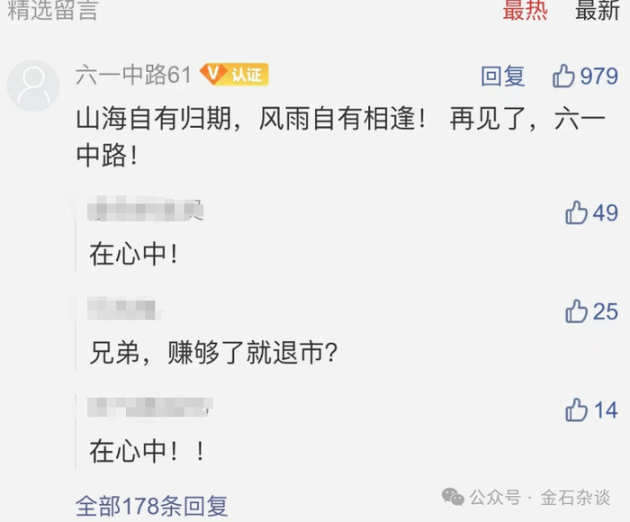 此言一出,彻底刷屏资本圈。有不少股民表达祝福,六一中路永远在心中;还有股民灵魂发问:兄弟,赚够了就退市?