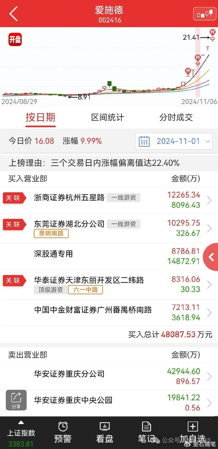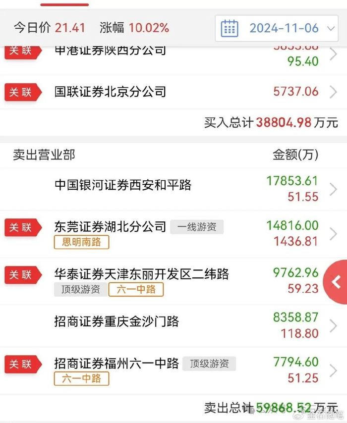 再简单说下六一中路近期的大事件,最为知名的应该就是金石杂谈11月1日凌晨发文的合肥国资砸盘10亿套现,而接盘的则是六一中路等一干游资们。彼时更是有财经博主表示六一被狙击:今天合肥政府狙击目前a股超级游资六一中路,六一拉涨停后,合肥政府狂卖10亿,连续80万股的砸盘。