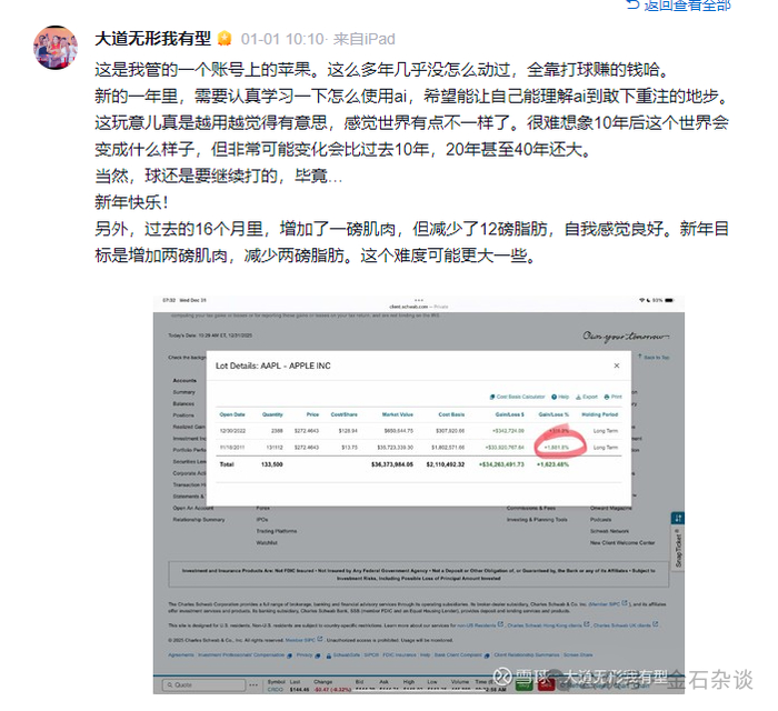 1月1日上午,段永平发帖,首先说了自己一个账号,全靠打球赚的钱;然后说要认真学习AI,希望可以理解到下重注的地步;其次,他还谈了自己的打球和锻炼。
