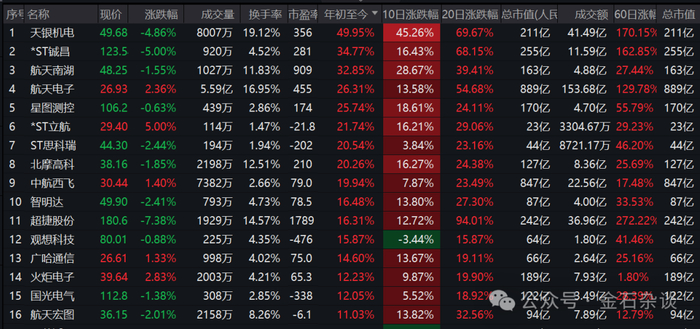 不过,商业航天还有不少涨幅超10%的个股,天银机电更是暴涨近50%。