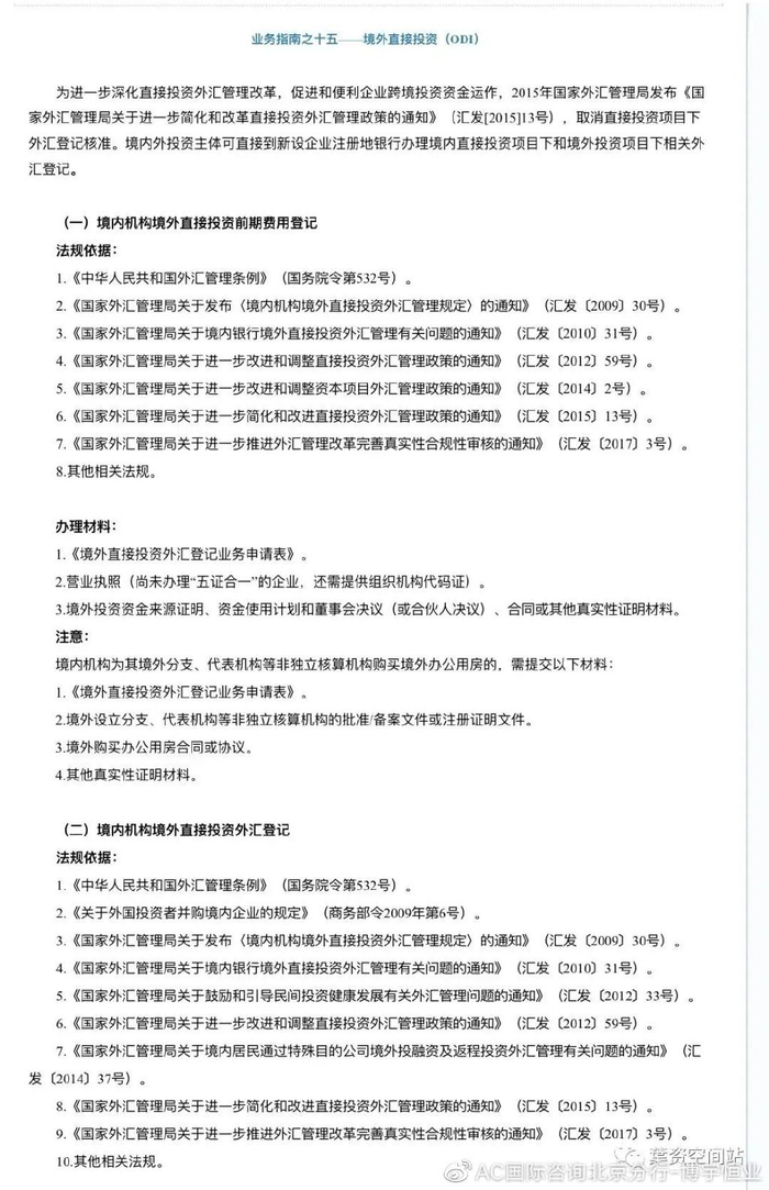 境外投资(ODI)备案涉及到商务部、发改委以及外汇局三个部门。