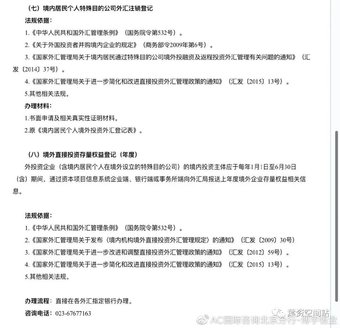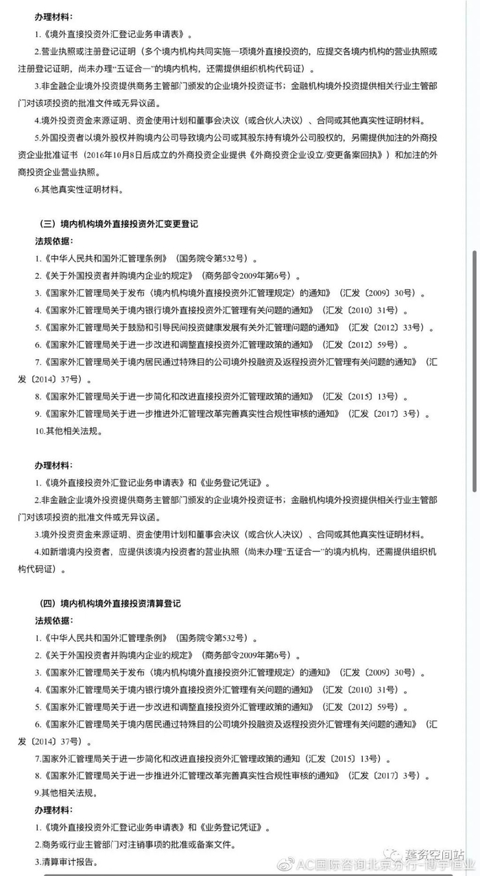 最后,外管局负责监管外汇登记和资金出境的相关手续。备案手续完成之后,需要根据《境内机构境外直接投资外汇管理规定》,在银行完成外汇登记手续。