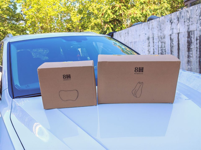 后来听朋友说,可以试试购买一套腰靠和头枕,这样可以有效缓解疲惫感。选来选去,最后在小米有品上选了一款来自8H的不犯困舒适汽车头枕和腰靠。