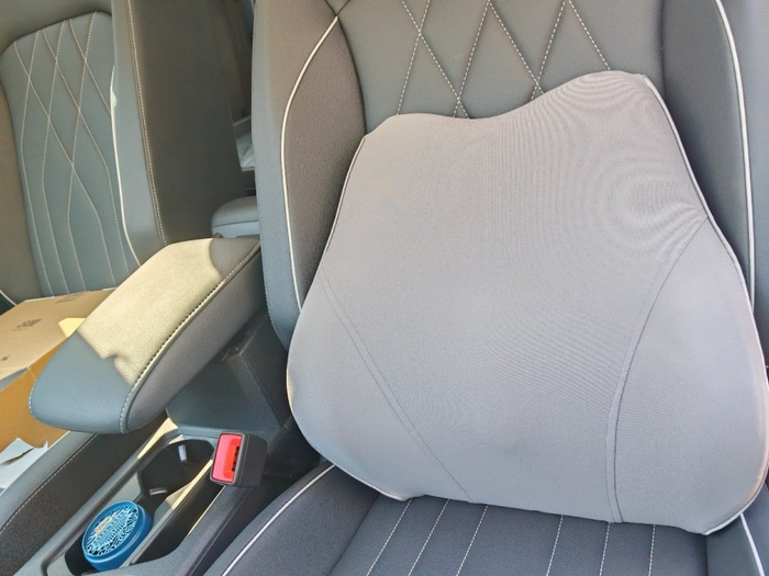 另外,腰靠的后面设计了一个嵌入式的卡扣,可以塞进座椅腰背的接缝处,提升不少稳固性,和可以适配更多的车型。