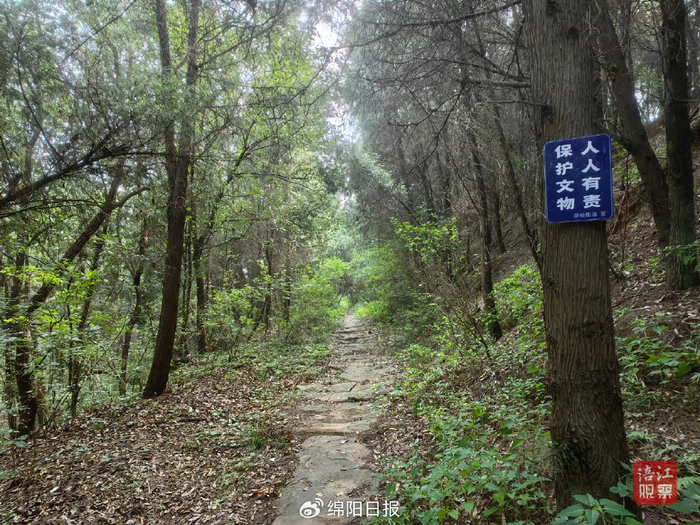 在第四次全国文物普查中,绵阳市游仙区文物部门经过实地调查后,将滥泥铺古驿道作为新增文物点进行普查登记,在古驿道旁悬挂“保护文物,人人有责”牌子,旨在增强公众的文物保护意识,以此加强对古驿道的保护,避免进一步损坏。