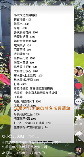 在粉丝量增长的过程中,“小鱼儿夫妇”有过两次“高光时刻”。第一次是在今年的4月28日,这是改造小院后的第十个月。王敏将改造小院的全部过程做成了一个2分36秒的视频,上传到平台上。结果,一天时间,视频播放量过亿,粉丝一下子增加了270余万。第二次“高光时刻”,是在今年的11月22日。王刚将运动相机戴在自家小猫叨乐的身上,记录下叨乐一天的行动,全网有8000多万网友体验了一把“沉浸式当猫”。