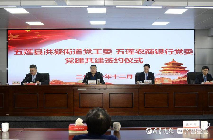 洪凝街道党工委和五莲农商银行党委现场签订了党建共建协议,围绕“组织共建,党员共育,优势共融,服务共促,资源共享,发展共赢”加强党建共建工作,努力实现相关工作提档升级。